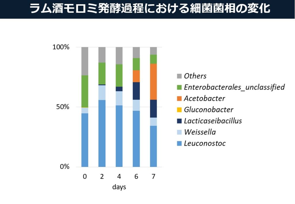 こちらは千葉県内の民間企業とのコラボレーションになります。サトウキビや糖蜜から作る蒸留酒(ラム酒)の発酵過程で優占する微生物(乳酸菌や酢酸菌、酵母)を培養法や次世代シーケンサーを用いて解析し、その動態を科学的に理解します。また、優良酵母を選抜しスターターとして利用することで、優れたアロマやフレーバーを付与した新しい製品の開発にも貢献します。